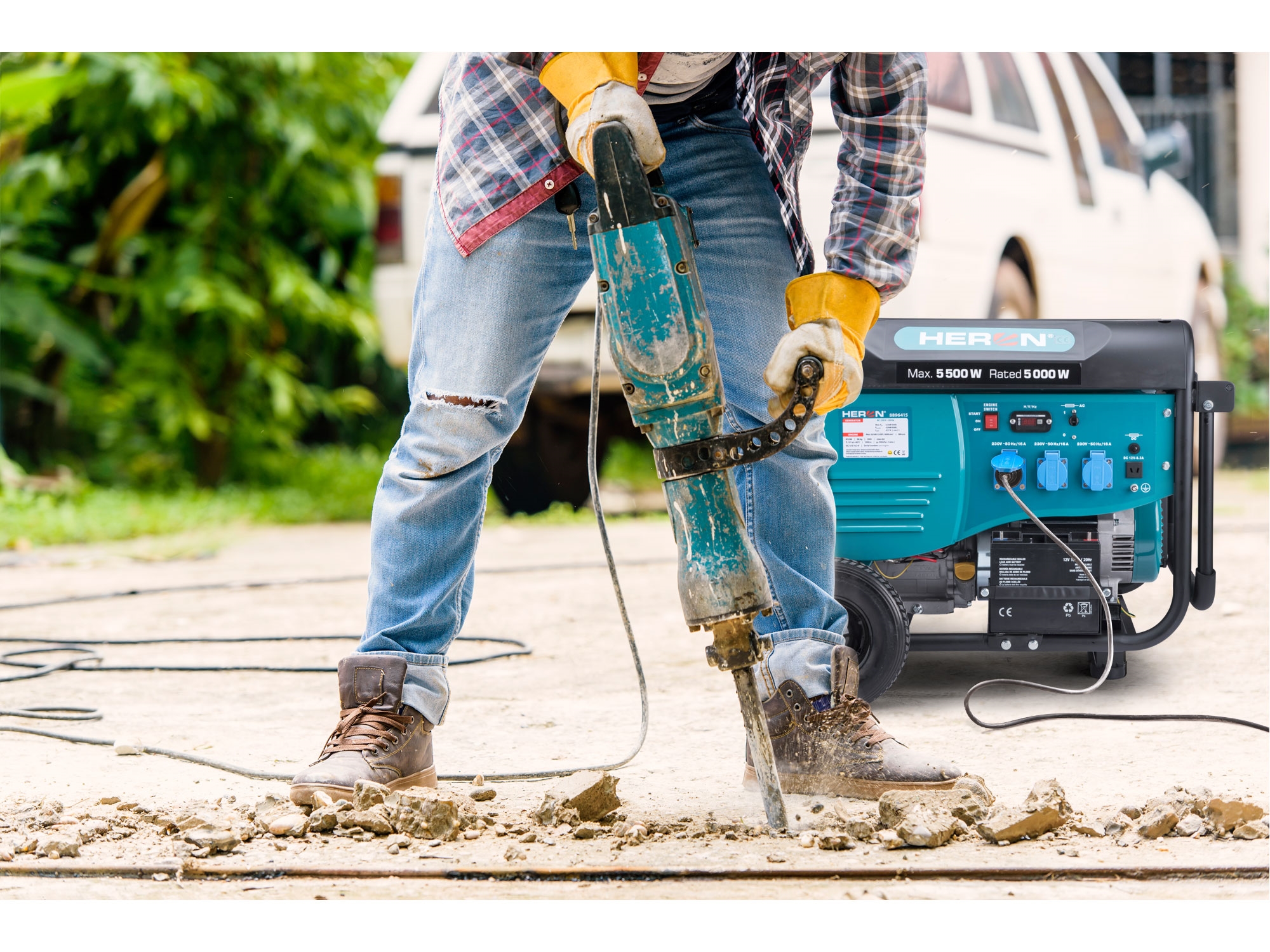 Jednofázová elektrocentrálaHERON s podvozkom pod označením 8896413 je vďakasilnémumotoruakvalitné konštrukciiurčenána použitiev stavebníctve,napájaniezváracíchagregátov,pre montážne prácealebo ako zdrojenergiepremobilné servisnéstrediská.